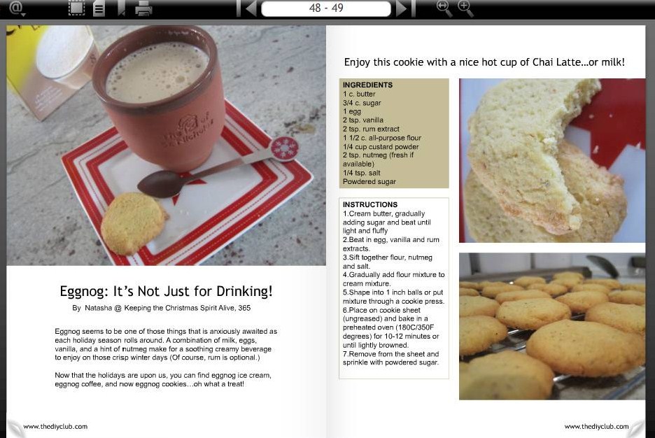 The DIY Club, has been working really hard over the last few months putting together The FREE DIY Life eZine. It is full of so many inspirational ideas, recipes, and crafts. I just love this special Holiday issue and I am so excited as my recipe for Eggnog cookies that I posted here is featured on page 48.