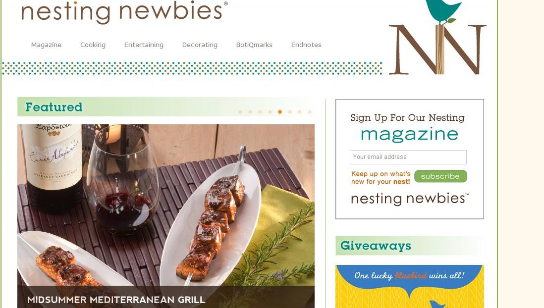 The last one is new to me but I am sure many people have seen it already. It is called Nesting Newbies and I am totally addicted to it! It is another shelter magazine but I love it because it has online cooking segments, and informational blogs aimed at showing all of us "Nesters" how to cook, entertain, and decorate.