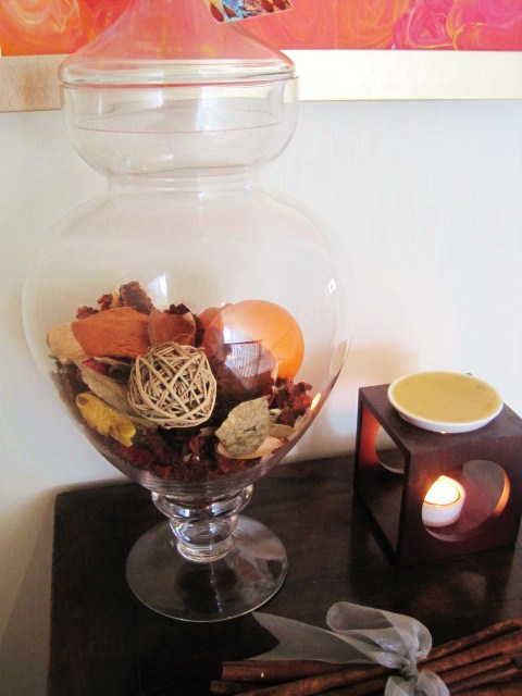 I just love decorating with cloches and apothecary jars. Somehow, everything just looks so much more special and beautiful when encased in glass!